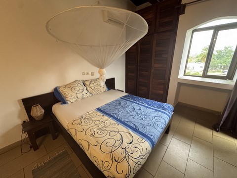Situé au deuxième étage, l’appartement Dalenda offre un cadre idéal avec une spacieuse terrasse et une vue imprenable sur la mer. Il dispose de trois chambres climatisées, dont une suite parentale avec terrasse privée et salle de bain attenante. Le séjour confortable comprend une télévision avec Canal+, et la cuisine équipée met à votre disposition un grand réfrigérateur, un micro-ondes et des plaques de cuisson.