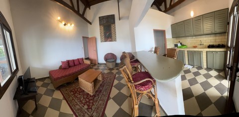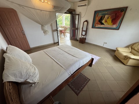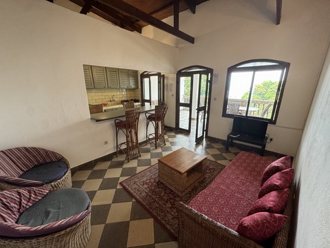 Situé au deuxième étage, l'appartement Madeleine vous offre un cadre de vie parfait entre confort et nature. Sa terrasse spacieuse avec vue imprenable sur la mer est idéale pour profiter des couchers de soleil. L'appartement comprend deux chambres climatisées et une petite chambre, deux salles de bain, dont une suite parentale qui donne sur une terrasse, garantissant un maximum de confort et d'intimité. Le séjour intérieur est lumineux et accueillant, et la terrasse aménagée sert de séjour extérieur, parfait pour se détendre.
