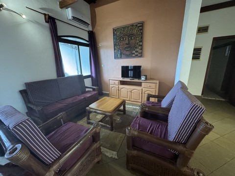 Situé au deuxième étage, l’appartement Dalenda offre un cadre idéal avec une spacieuse terrasse et une vue imprenable sur la mer. Il dispose de trois chambres climatisées, dont une suite parentale avec terrasse privée et salle de bain attenante. Le séjour confortable comprend une télévision avec Canal+, et la cuisine équipée met à votre disposition un grand réfrigérateur, un micro-ondes et des plaques de cuisson.
